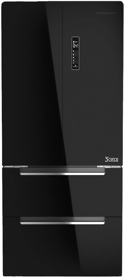 Холодильник Kuppersbusch FKG 9860.0 S — это отдельно стоящий товар с морозильной камерой, который удобен для встраивания на кухню, поскольку он имеет стандартные габариты: ширина — 83,3 см, глубина — 68,5 см, высота — 189,8 см. Модель представлена в классическом глянцевом черном цвете, поэтому идеально подойдет к любому кухонному интерьеру. Общий полезный объем техники составляет 535 л, из которых 348 л приходится на холодильную камеру, а 187 л — на морозильную. Благодаря такому большому объему Вы можете теперь не переживать, что для продуктов не хватит места — отличный вариант для семьи из 4 человек.