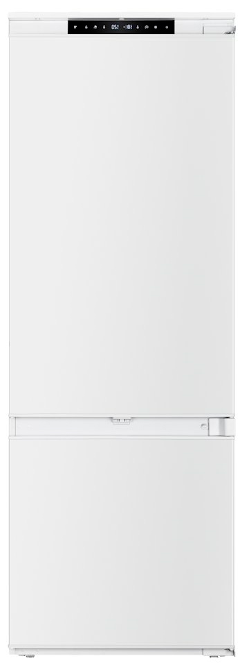 Дизайн холодильника выполнен в классическом белом цвете, что позволяет ему гармонично вписываться в любой интерьер. Ручка интегрирована в корпус, что придает модели еще большей элегантности. Управление осуществляется с помощью сенсорного экрана, на котором расположен цифровой дисплей. Это обеспечивает простоту и удобство использования, а также возможность точной регулировки температуры в холодильном и морозильном отделении с точностью до 1 °С.