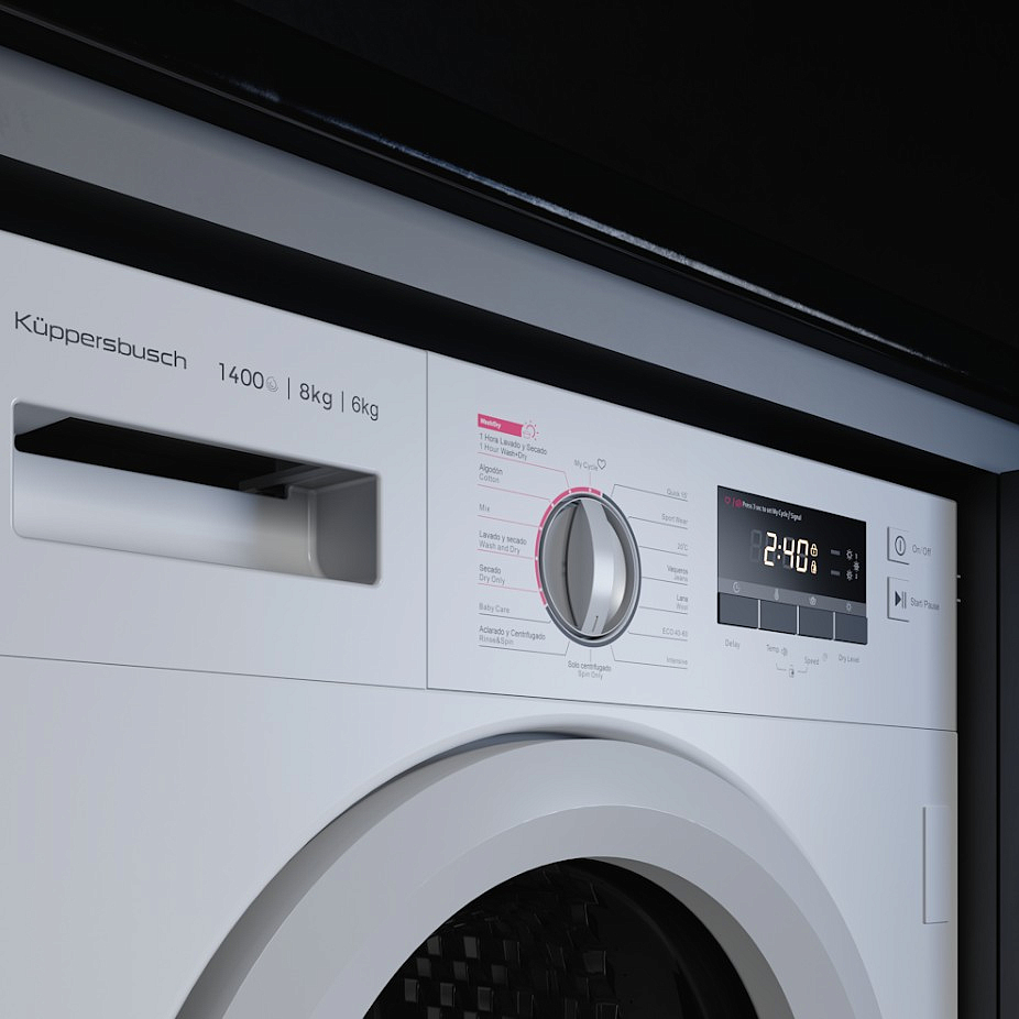 - Встраиваемая стиральная машина с функцией сушки для максимального комфорта.