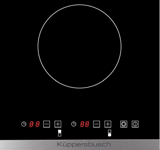 Поддержка автоматики закипания позволит уменьшить мощность через некоторое время работы конфорки на максимальной мощности, если Вам нужно протушить или проварить продукты. Защита от перегрева гарантирует безопасность даже при нарушении правил эксплуатации или повреждении электрической варочной панели Купперсбуш VKE 3300.0 SR. В случае превышения нормальных температурных показателей внутри прибора нагрев прекратится автоматический. Главная особенность девайса — это наличие двухконтурной конфорки. Теперь вы можете сделать расширение зон приготовления для использования большой посуды.