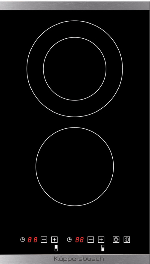Электрическая варочная панель Kuppersbusch VKE 3300.0 SR — двухконфорочная модель с нагревом Hi-Light позволяет готовить в больших кастрюлях и сковородах, жарить на гриле. Выполнена она в черном цвете, а материалом изготовления всей конструкции стала стеклокерамика, которая гарантирует долгий срок службы, легкое очищение и хорошую передачу тепла. Поверхность поддерживает ряд функций, которые делают процесс приготовления максимально комфортным. Индикатор остаточного тепла показывает, что температура варочной зоны еще выше 60 градусов, поэтому ее можно использовать для разогревания блюд, растапливания шоколада или масла.