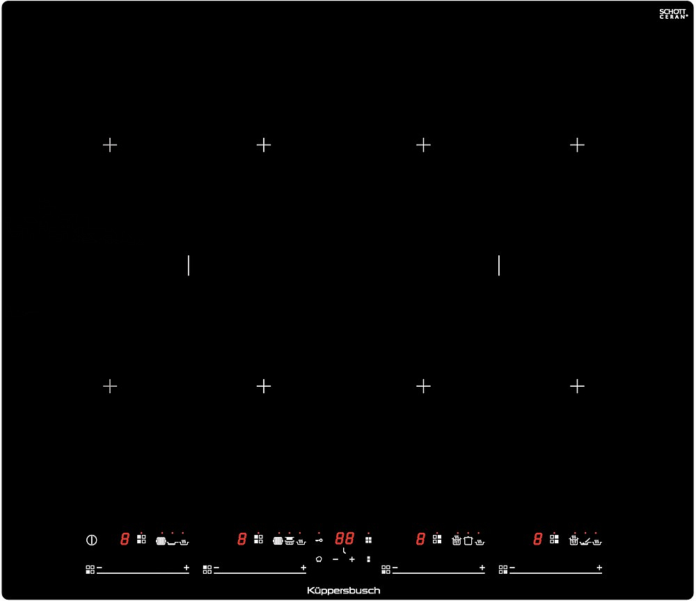 Индукционная варочная панель Kuppersbusch KI 6750.0 SR — это элегантная модель, имеет характерный узор, который обрамляет 4 индукционные варочные зоны. За счет своего дизайна техника выглядит благородно и подойдет к абсолютно любому дизайну. Она выполнена из стеклокерамики, которая достаточно проста в уходе и обладает отличной теплопроводимостью в вертикальном направлении, так что область вокруг зон нагрева и остается безопасной. Extended — это увеличенная, расширенная зона FlexInduction, которая подходит для посуды диаметром до 32 см. в товаре реализовано 18 уровней мощности, а также функция определения посуды — нагрев будет происходить только под дном кастрюли ил сковороды.