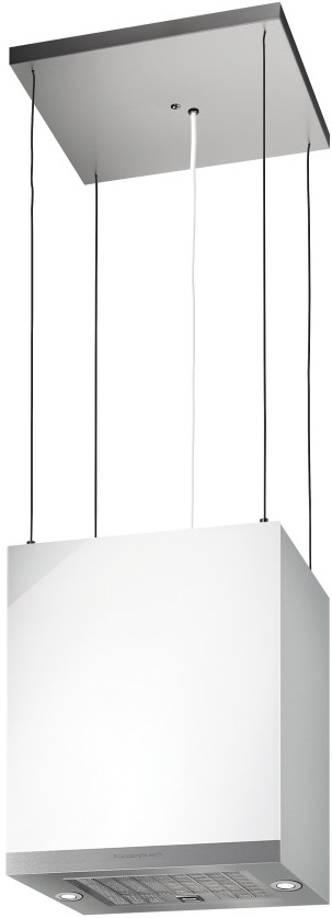 Островная вытяжка Kuppersbusch DI 3800.0 W1 изготовлена из нержавеющей стали со стеклянными белыми панелями по бокам, управление осуществляется с пульта ДУ. Система индикации оповещает о загрязненности фильтра. Имеются 8 режимов рециркуляции, а также интенсивная скорость.