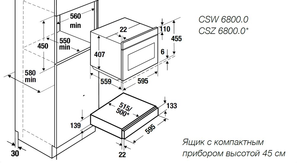 Схема встраивания для подогревателя посуды Kuppersbusch CSW 6800.0 W9