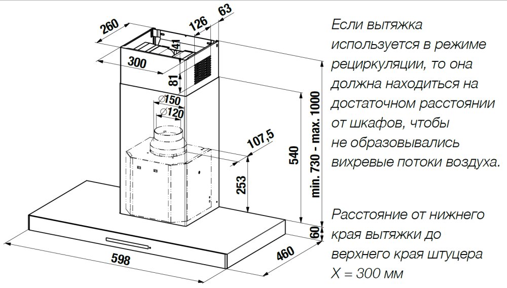 Схема встраивания для кухонной вытяжки Kuppersbusch DW 6340.1 E