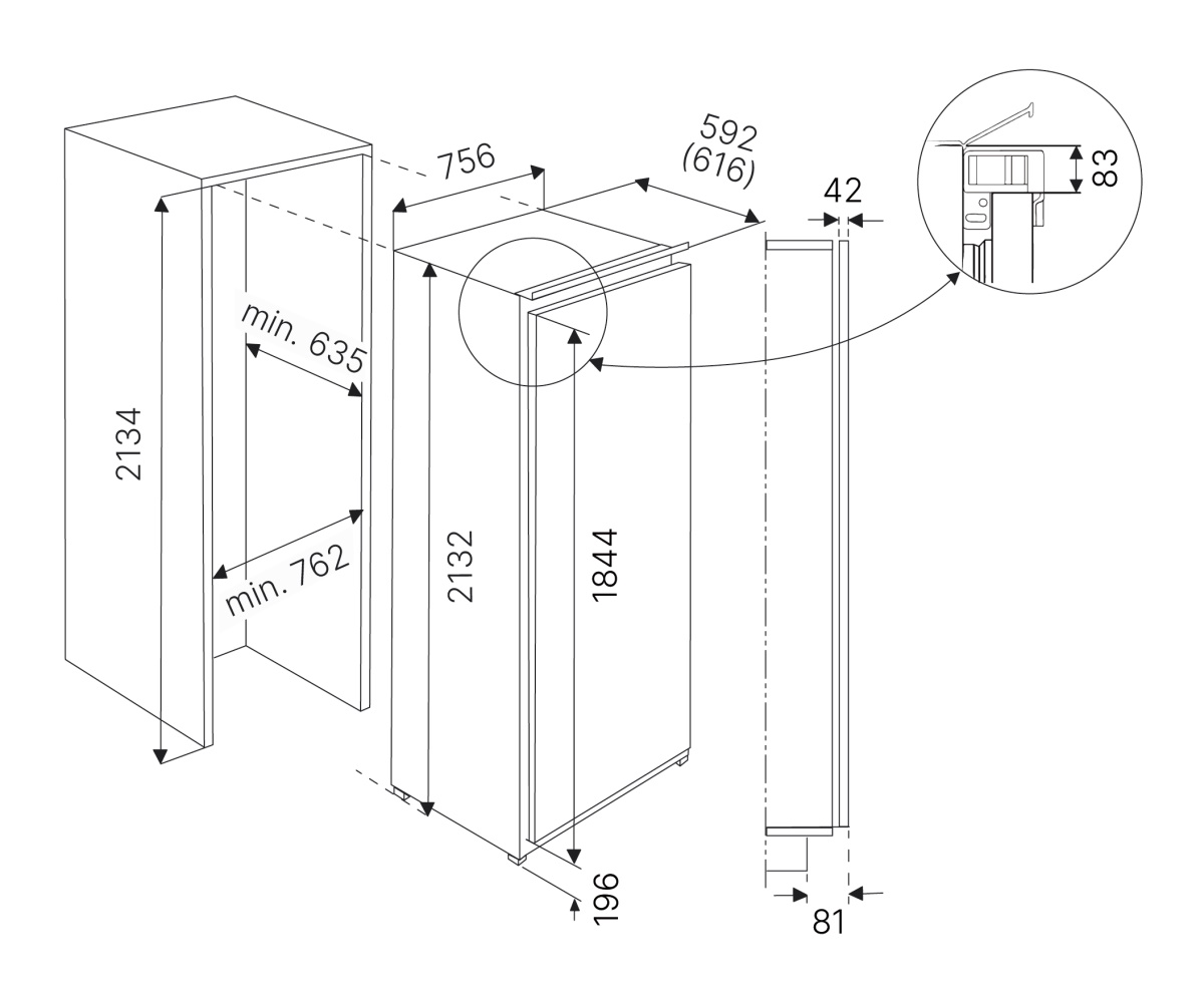 Схема встраивания для холодильника Kuppersbusch FKFX 9800.0i