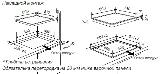 Схема встраивания для варочной панели Kuppersbusch KIG 6850.0 SR-E5