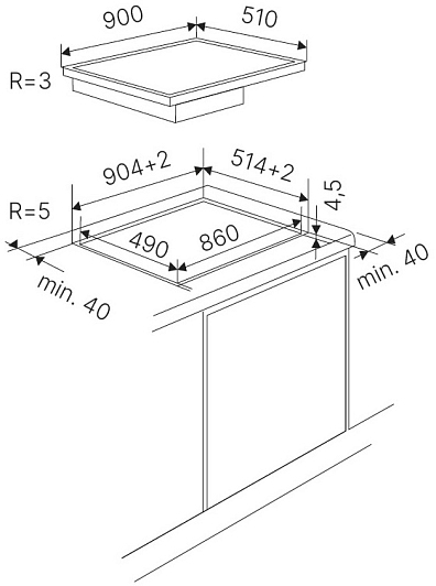 Схема встраивания для варочной панели Kuppersbusch KMI 9350.0 SR Black Velvet