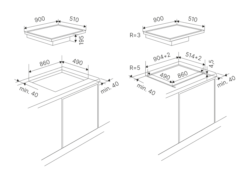 Схема встравания для варочной панели Kuppersbusch KMI 9850.1 SR-E Black Chrome